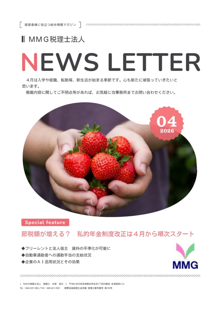 [税務情報] ZEIMU INFORMATION 2026年4月 埼玉・大宮 経理・労務アウトソーシングオフィス(運営:MMG税理士法人・MMG社会保険労務士法人)では、 経営者の方や経理担当者の方に是非押さえていただき […]
